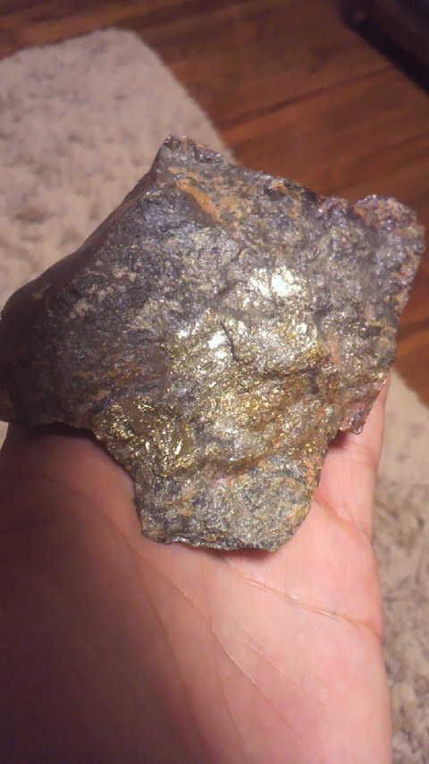 黄鉄鉱 北九州市小倉南区頂吉(かぐめよし)にある頂吉林道沿いにある小川で採取しました。黒っぽい石が転がっていたので、岩石ハンマーで叩いてみたら、中々割れず火花ばかり。自宅に持ち帰り、デカハンマーで割ったところ、ギラギラ金色に光ってるものが多数あったので、金かと思ってました。知人に見せたところ、それは、「黄鉄鉱」と教えて頂きました。 [0回]PR (2013年08月07日・鉱石)